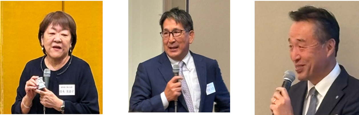 続いて、鈴木・鈴茂器工代表取締役会長から寿司ロボットのカプセルトイのご案内とご提供をいただきました。また生田・ミクニ代表取締役社長と福井・トヨタモビリティサービス取締役専務執行役員からは、出展されるジャパンモビリティショーのご案内と入場券のご提供をいただきました。