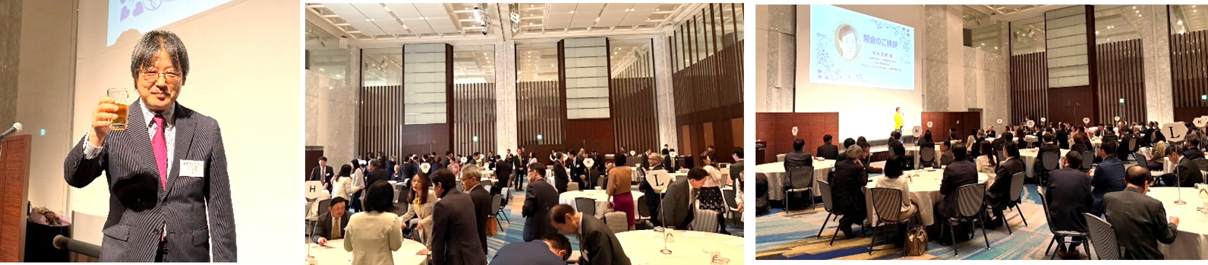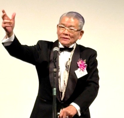続いて、一流塾志会 最高顧問の抱厚志氏(第1期)による乾杯のご発声が行われました。抱氏は「塾長や塾生同士が出会えたことに感謝し、塾長には“千寿”、そして“萬壽”まで元気でいていただきたい」と語り、会場は大きな笑いと拍手に包まれ、祝宴が華やかにスタートしました。