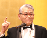 ここで、ご来賓代表として、KKRジャパン会長、元株式会社日本取引所グループ取締役代表執行役グループCEOの斉藤惇様から、ご挨拶をいただきました。斉藤様は「一柳さんは気配りができて頭がいいところを笑いで隠す。20年来の付き合いの中で、裏で人の悪口は絶対言わないし、代わりに行動を起こす。そのひとつが一流塾。塾生に本当の人間やビジネスを教えている。近い将来赤坂の迎賓館に招待してほしい、それくらい一柳アソシエイツが伸びてほしい。」とご挨拶されました。