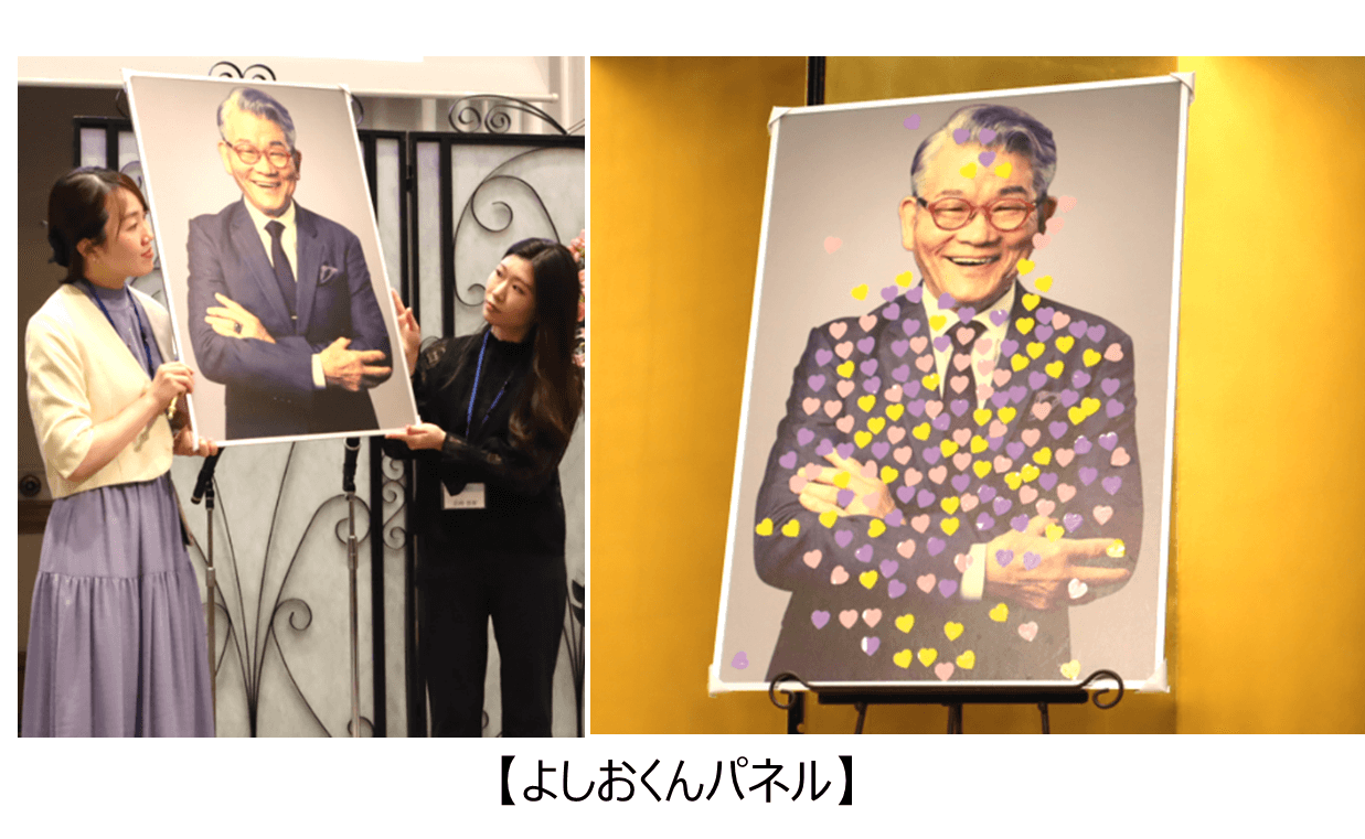 華やかな雰囲気の中で和気あいあいと歓談が進み、全員参加型のイベント「一柳良雄を最も象徴する言葉は何か」の結果発表では、「志」という結果となり、会場は大盛り上がり。一柳も「志は外から見えない。中身の部分が一番多かったのは大変嬉しい。」と言葉がありました。