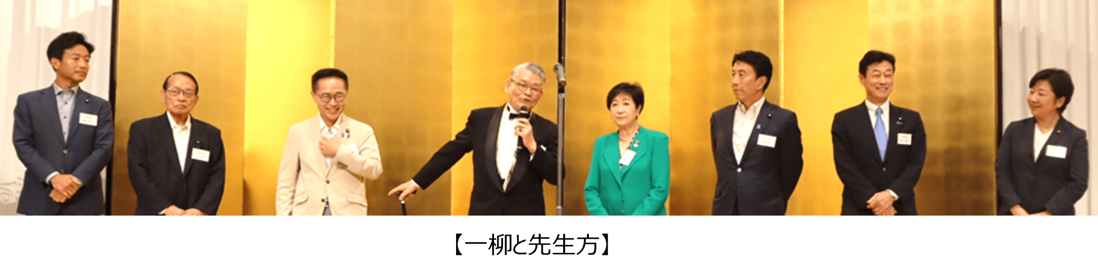 そして、公務ご多忙なところ小池百合子・東京都知事、齋藤健・元経済産業大臣、鈴木隼人・衆議院議員、自由民主党中小企業関係団体委員長、西村康稔・元経済産業大臣、野田聖子・元郵政大臣、平沢勝栄・元復興大臣、古川元久・元国家戦略大臣の皆様がお祝いに駆けつけてくれました。小池様は「25周年おめでとうございます。一柳さんと岩崎さんは素晴らしいコンビ、一柳さんも人心をしっかりつかんで離さないから、ドンドン人が集まってくる。まさに一柳マジック。」、齋藤様は「私も過去にお金の苦労を同じようにした。25周年も我がことのようにうれしい。」、西村様は「私は初めての立候補が25年前、一柳さんはとにかく前向きにチャレンジする姿勢が立派、失敗しながら次に挑戦する大切さを学ばせて頂いた。」、野田様は「一柳さんとの思い出は、お酒の席で飲んで笑っていたこと。これからも、良き兄さんとして共に歩んでいきたい。」、古川様は「志・情熱・信頼は変わらず政治の世界でも大切。おめでとうございます。」、平沢様は「天下りを捨てて社会に出て成功したことは一柳さんだからできたこと、こういう人が日本で頑張ってほしい。」、鈴木様は「VTRの若い日の一柳さんもかっこいいが、圧倒的に今のほうがかっこいいと思った。これからもかっこいい姿を周りに見せてほしい。」と、激励と感謝の言葉をいただきました。
