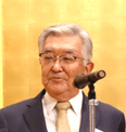 歓談の時間をはさみ、来賓ご挨拶として、読売新聞グループ本社代表取締役会長主筆の老川祥一様からご挨拶をいただきました。老川様は「25周年おめでとうございます。同じ大阪の出身で財務大臣をされた塩川正十郎さんも言っていたが、自力で会社を作って頑張っている、なかなかできることではない。まさにその通り、一柳さんといえば志。日本の人材育成の3大私塾のひとつと言われるほどの塾を持ち、さらに、自分で本を書くのではなく、自分を本に書かせた、しかもそれが売れる、これは私にはできない。頭の下がる思い。これからも仕事に専念して、多くの人材を育ててほしい。」とご挨拶されました。