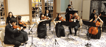 この後、あずさ監査法人室内楽団の皆様による演奏が始まりました。総勢10名の管弦楽団の皆様から息のぴったり合った生演奏を披露され、会場の雰囲気が華やかになりました。