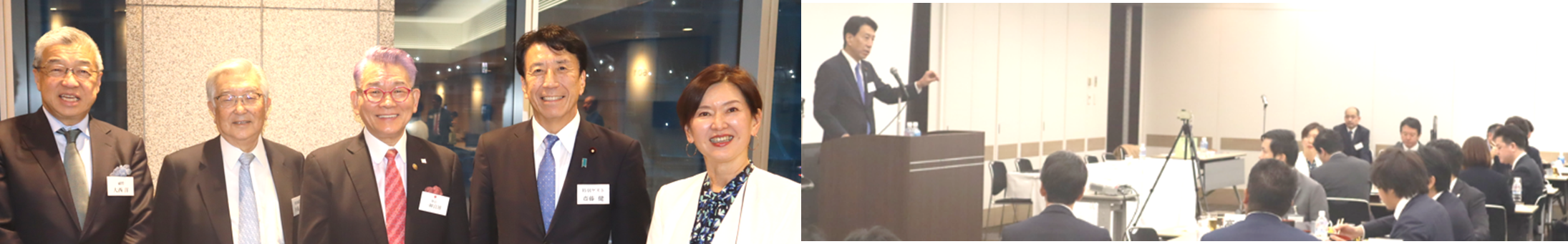 懇親会は一柳塾長による開会の挨拶に続き斉藤惇氏による乾杯の後、特別ゲストの齋藤健氏から『転機にある政治・経済』と題して卓話を頂戴いたしました。齋藤健氏からは、今現在まさに問題となっている中東情勢とエネルギー問題について、大臣のご経験をもとに、オフレコの話も含めてご見解を述べられました。塾生からも「独自の考え方を交えた分かりやすいお話で、本音の講義の醍醐味を感じました。」「テレビや報道など他では聞けない生の情報を伺えて貴重な経験でした。」「目の前の原油価格の変動の裏側で動く複雑な部分を分かりやすく、教科書では学べない臨場感あふれる講話でした。」といったコメントが寄せられました。