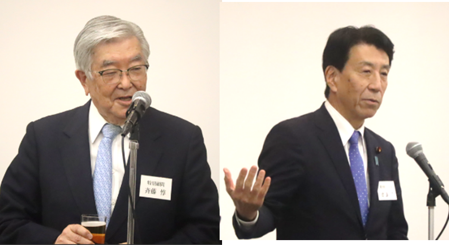 第2部の開塾式では、一流塾特別顧問の斉藤惇氏(㈱KKRジャパン 会長)、一流塾顧問の白石真澄氏(関西大学名誉教授)、一流塾顧問の大西洋氏(前㈱羽田未来総合研究所 代表取締役社長執行役員)、懇親会の特別ゲストである齋藤健氏(衆議院議員、元経済産業大臣、元法務大臣、元農林水産大臣)をお迎えし、塾生への激励のお言葉を頂きました。また、一流塾特別顧問の八木洋介氏(㈱people first 代表取締役)からはVTRでメッセージを頂きました。