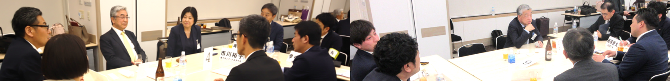懇親会終了後には、塾生有志による一柳塾長を囲んでの放談会が行われました。放談会には㈱TBSテレビ アナウンサーの駒田健吾氏をお呼びし、「話し方講座」と題してスピーチの仕方を分かりやすくご説明いただき、開塾式で初めて1分間スピーチをした塾生も真剣に聞き入っていました。会が進むにつれ、初めての一流塾で緊張されていた塾生の皆様も、これまでの緊張が徐々にほぐれて会話も弾み、和気あいあいと裃を脱いだ交流が夜遅くまで続きました。